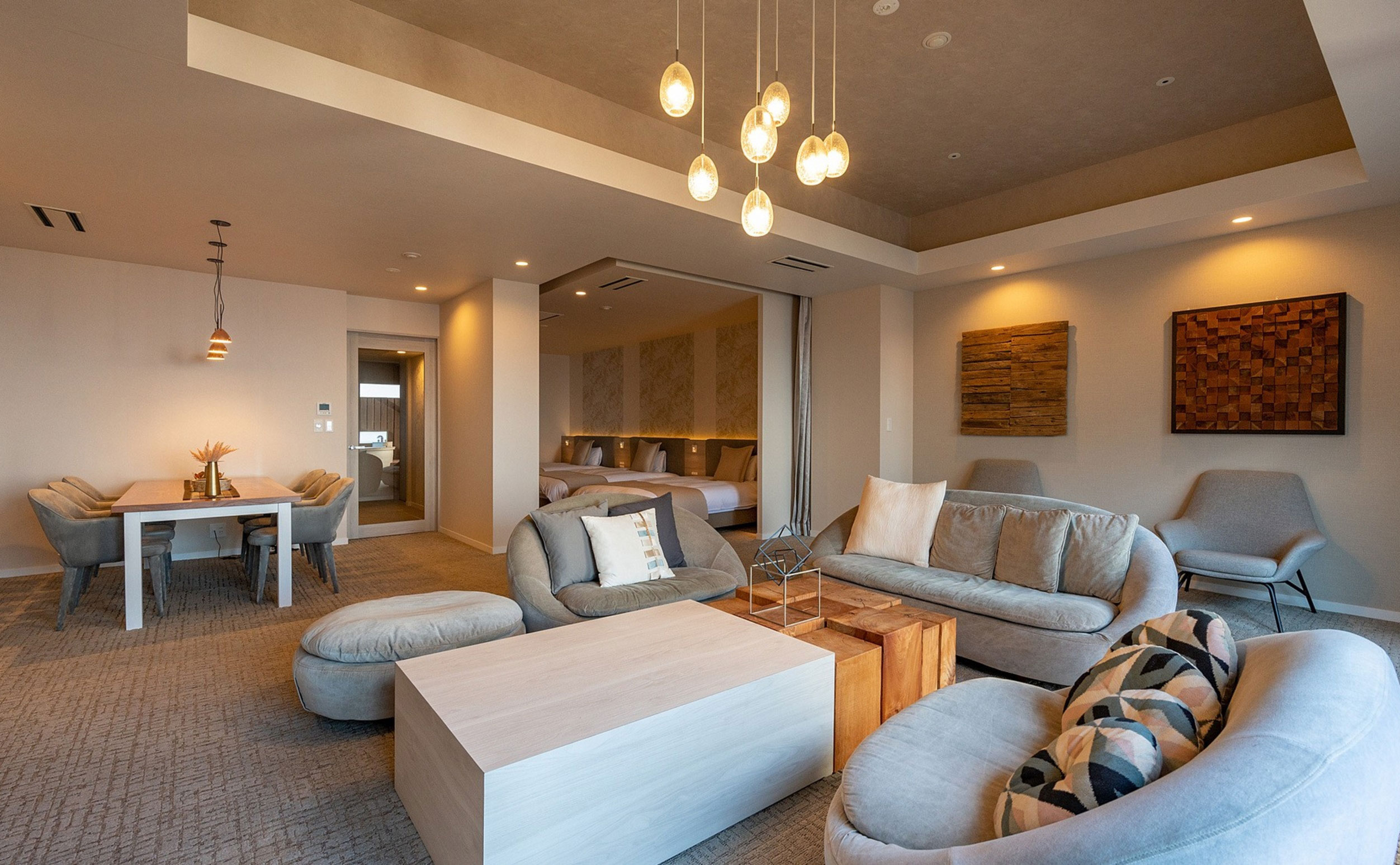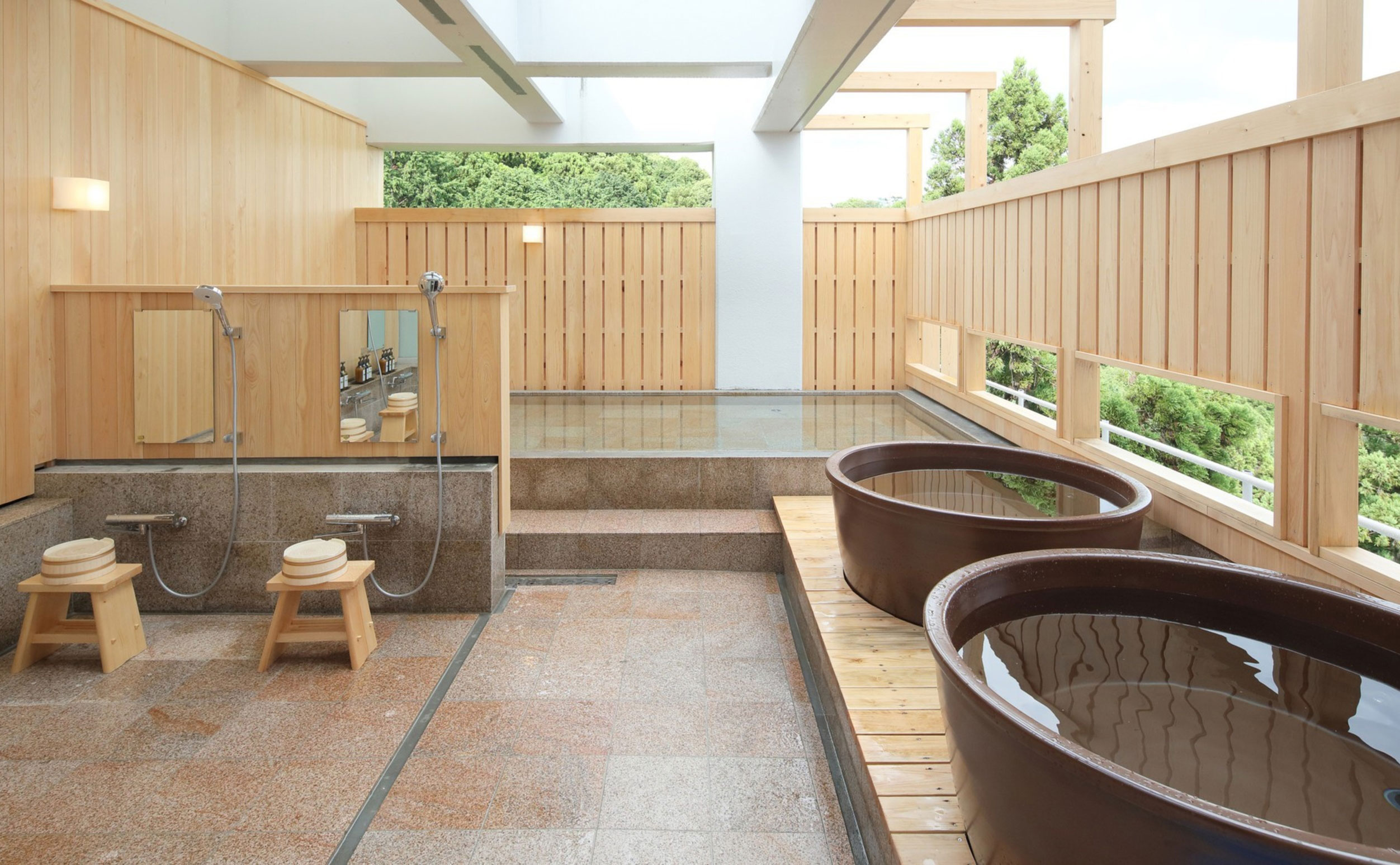 「石のや 伊豆長岡」の系譜を汲むおもてなしと、屋上テラスからはオーシャンビューをお楽しみいただけます。