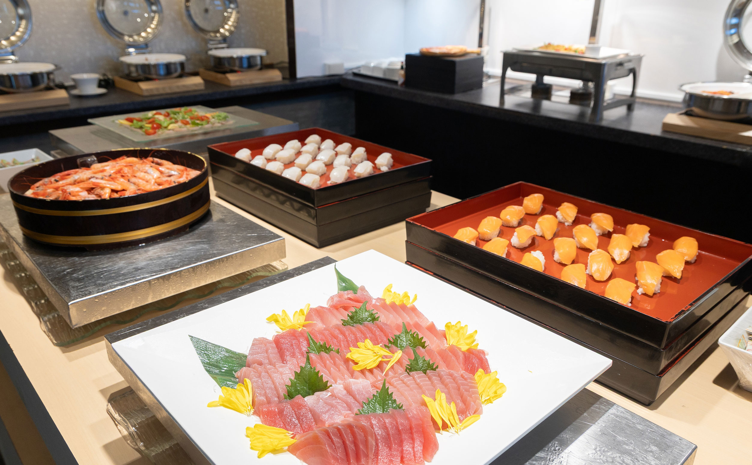 夕食は料理長自慢の創作洋食膳とハーフバイキング。